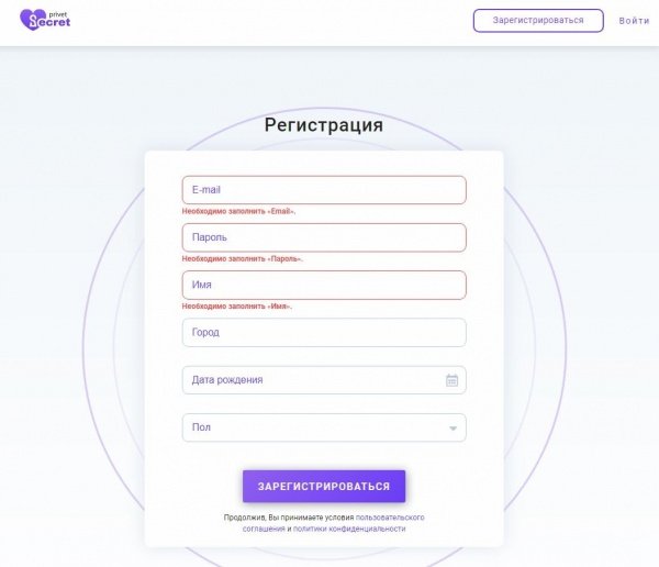 Благодаря «PrivetSecret» можно позабыть о территориальных рамках и начать строить свою личную жизнь уже сейчас. Для того, чтобы приступить к отбору спутников жизни, необходимо пройти регистрацию на сайте.