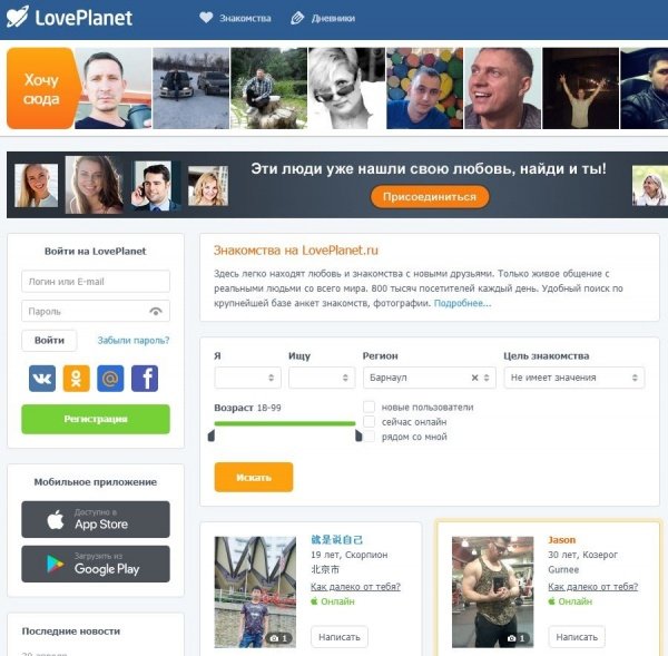Сайт знакомств LovePlanet — один из самых узнаваемых сайтов на территории России и не только. Благодаря этой платформе знакомства мужчин и женщин в интернете стали набирать популярность. На ЛавПланет зарегистрированы люди от 18 до 99 лет.