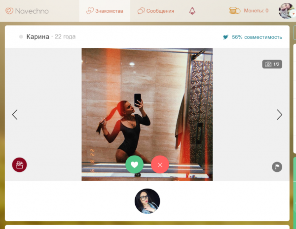 Клуб онлайн-знакомств Navechno – ресурс с условно-бесплатным доступом к сервисам. Регистрация и создание анкеты на сайте Navechno бесплатны для мужчин и женщин. Навечно предлагает пользователям приобрести монеты - внутреннюю валюту, с помощью которой можно оплатить продвижение анкеты в топ, более частый показ фото в игре «Знакомства». Для свободного общения и расширения возможностей можно оплатить подписку «Премиум» сроком на 1, 3 и 6 месяцев.