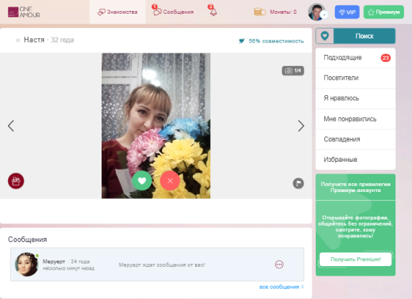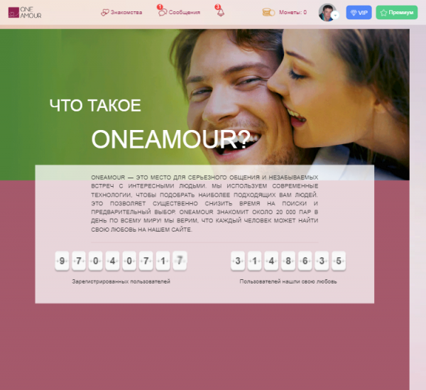 Одна из таких площадок – сайт знакомств OneAmour. Среди конкурентов, данный сервис отличается большой базой зарегистрированных пользователей.