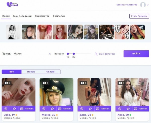 Сайт знакомств PrivetSecret - набирает в последнее время популярность. Он ежедневно пополняется огромным количеством анкет парней и девушек которые хотят найти свою вторую половинку для серьезных отношений или же просто познакомиться с приятным собеседником.